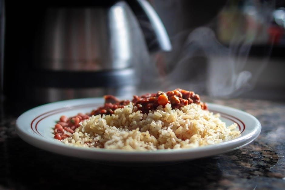 This manual serves as your comprehensive guide, detailing every aspect of operation. Like webpack’s progressive guides, we’ll start with the basics and build towards more advanced techniques. Expect clear instructions, water ratio guidelines, and troubleshooting tips to ensure perfect results every time. Prepare to unlock a world of culinary possibilities!